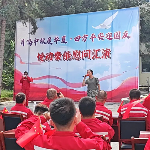 演出在铿锵激昂的《歌唱祖国》中拉开帷幕,艺术团成员与陕西四方平安爆破公司下属单位甘肃秦能科技建材有限公司的一线职工齐声高歌,用歌声表达对祖国76周年华诞的祝福。